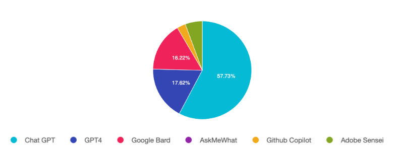 Adoption and perception of generative AI tools is overwhelmingly positive, with 96% of workers being open about their use of these tools. ChatGPT has the edge over rival tools, with 58% of workers identifying it as their tool of choice, compared to GPT4 (18%), and Google's Bard (16%). Business leaders are embracing it and workers are aggressively incorporating it in their work.